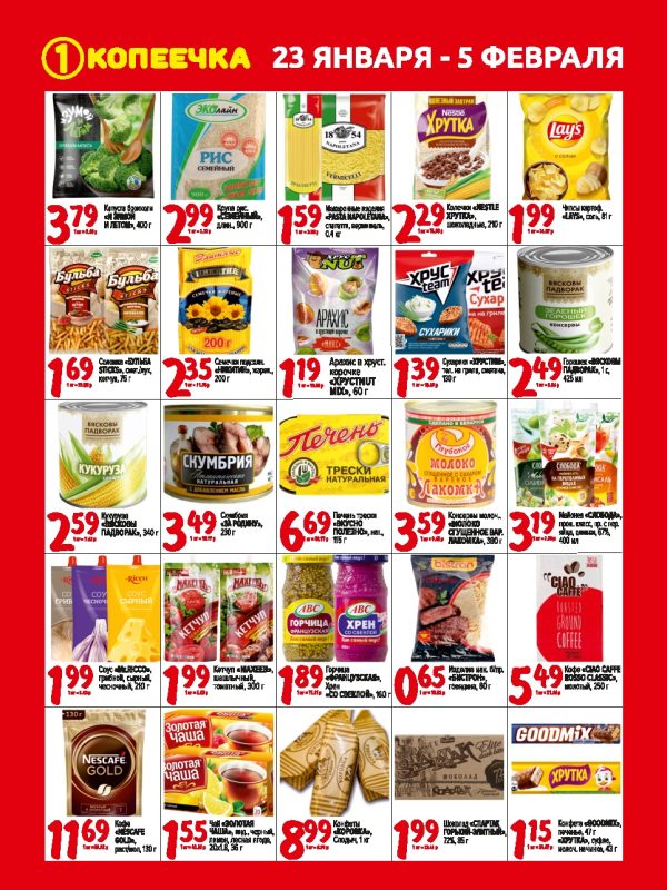 акция“Копеечка” 20.01.2023 Опубликовано admin 20 Янв @dobronom_kopeechkaЭТИ ЦЕНЫ с 23 января по 5 февраляАллея «Дружбы»Рынок «Привоз»Бульвар Дружбы 3аОгромный выбор продуктов по низким ценам